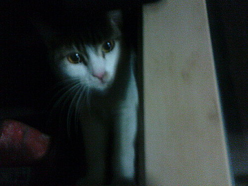 警戒心很高 喜歡吃罐頭 聞到味道 會探頭出來要飯吃