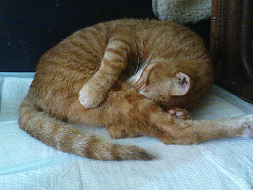 大小便失禁的問題 雖然有稍微改善 但還是需要到處鋪著尿護墊讓胖咪坐著和睡覺